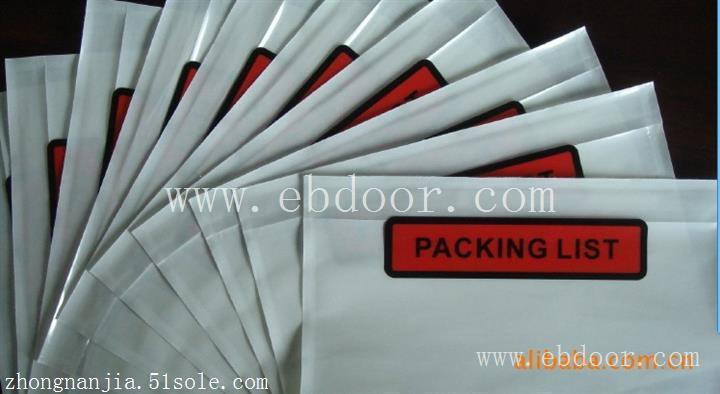 我公司专业生产背胶袋(也叫不干胶塑料、物流袋/贴箱袋装箱单信封),一面有不干胶可以贴于纸箱或木箱等包装容器上,另一面透明开口,可放入装箱单.提货单.安全数据单等随货资料, 。易于区别及清点包装物品.密封PE袋可以保护单据在运输中的安全,可按客户要求定做