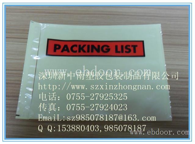 我公司专业生产背胶袋(也叫不干胶塑料、物流袋/贴箱袋装箱单信封),一面有不干胶可以贴于纸箱或木箱等包装容器上,另一面透明开口,可放入装箱单.提货单.安全数据单等随货资料, 。易于区别及清点包装物品.密封PE袋可以保护单据在运输中的安全,可按客户要求定做