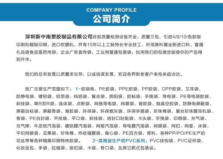 深圳市新中南塑胶包装制品有限公司   地址:深圳市宝安区西乡崩山工业区1栋3楼