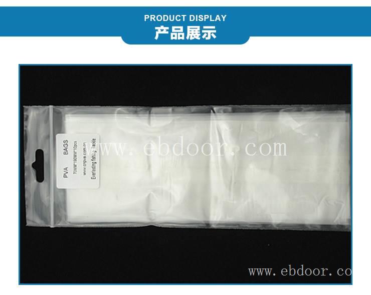 水溶袋是一种高分子水溶性膜,该高分子水溶性膜是采用水溶性高分子材料作为成膜基质,附加增塑剂、柔软剂、表面活性剂、分散剂等辅助材料,通过特定的成膜工艺制作而成。该膜具有良好的柔韧性和对各种物质的隔绝性,遇水迅速溶解。可以根据实际需要制成各种大小和不同形状的包装袋。包装:按照客户要求打包。 .打样时间:2-3天 .生产时间:一般生产时间小于500KG订单3-5天,外贸大单根据订单量双方商议。 .打样费用:光身胶袋用现料打样不收费,印刷胶袋客户提供样品,由客户方承担胶版或铜版费免费打样。